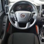 Safety and driver aids are advanced with Intelligent Cruise Control, Lane Departure Warning, Blind Spot Warning, Rear Cross Traffic Alert, Rear Automatic Braking, Traffic Sign Recognition, High Beam Assist, front/rear sonar, auto high-beam headlights, fog lights, emergency communication system NissanConnect Services, electronic stability control with traction control and brake assist, 4-wheel disc ABS brakes, and multiple airbags including knee and overhead.
